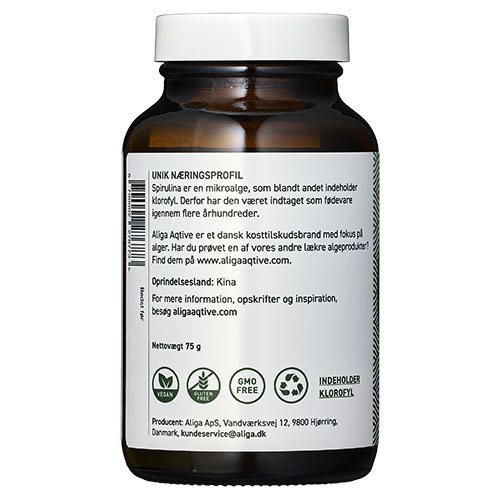 Spirulina er særligt populært i pulverform som tilskud i eksempelvis smoothies, men er smoothies ikke sagen, skal det gå lidt stærkt eller er spirulinaens karakteristiske plantesmag ikke lige noget for dig, så er Aliga Aqtives synkevenlige spirulinatabletter et godt alternativ til dig.