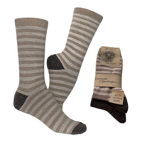 Clemente Strømper beigestribet + mørkebrun str. 43/46 2-pak Alpaka strømper glatstrikkede