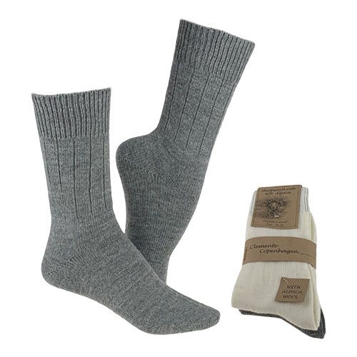 Clemente Strømper hvid & grå str. 39/42 2-pak Alpaka strømper tynde