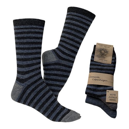 Clemente Strømper koksgrå/blåstribet & blå str. 39/42 2-pak Alpaka strømper glatstrikkede