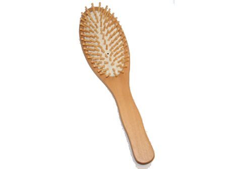 Oval hårbørste med børster og knopper af træ.