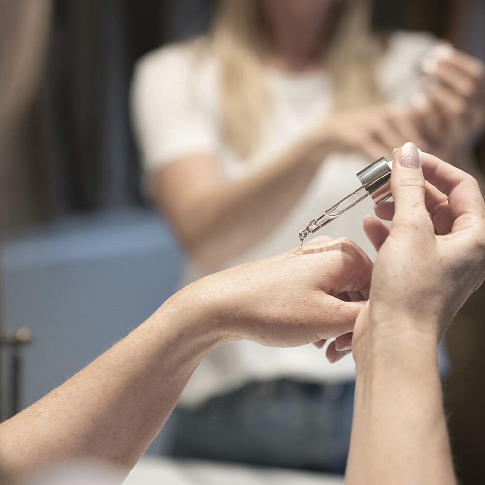 Påfør altid Serummet som det første - på afrenset hud - og lad den trænge godt ind, før enten dag- eller natcremen påføres.
