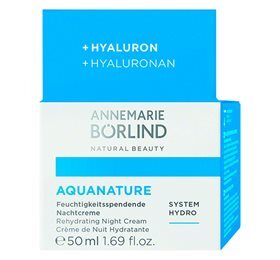 Aqua Nature Rehydrating Night Cream fra Annemarie Börlind - Nærende, fugtgivende og regenererende natcreme med papyrus stamceller og værdifulde botaniske olier, der har en intensiv regenererende effekt. Botanisk hyaluronisk syre og certificeret økologisk aloe vera giver fugt.