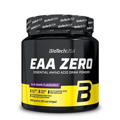 EAA Zero fra BioTech USA er et aminosyre-drikkepulver med essentielle aminosyrer, L-glutamin og sødestoffer. EAA Zero har et indhold af essentielle aminosyrer på 3069 mg per 4 g pulver.