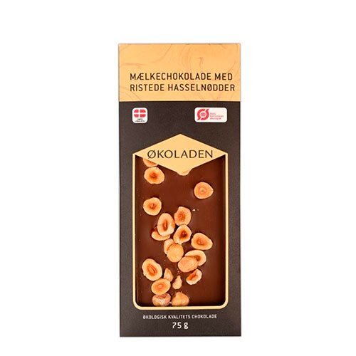 Økoladen Mælkechokolade m. Ristede Hasselnødder Ø, 75g.