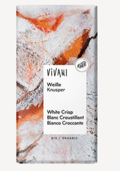 Vivani Weisse Knusper er økologisk hvid chokolade med riscrisp.