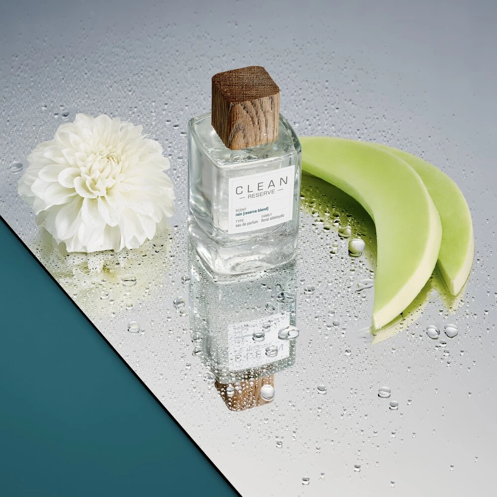 CLEAN RESERVE kollektionen er skabt med omtanke for både mennesker og planeten; f.eks. indeholder duftene bæredygtige ingredienser, som giver tilbage til bønder og deres samfund. Rain EdP indeholder bæredygtig vetiver fra Haiti for at støtte bønderne og deres familier med både uddannelsesprogrammer og sundhedspleje.
