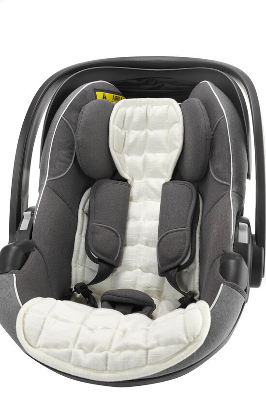Kapok babyindsats til autostol i rene økologiske og allergivenlige materialer. Indsatsen er formet så den passer til alle 0-13 kg. babyautostole, og kan let justeres efterhånden som autostolen justeres i størrelse.