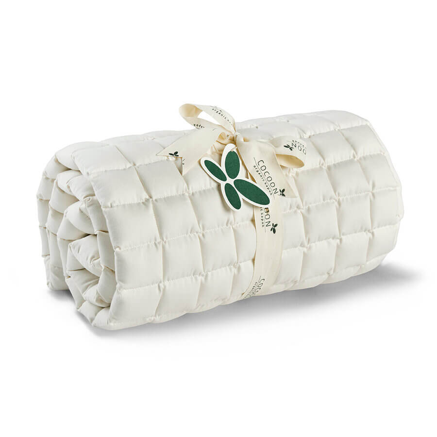 Lækker kapok rullemadras til Daisy rattanseng fra COCOON COMPANY i rene økologisk og allergivenlige materialer. Et fantastisk tillæg, der giver gode temperaturregulerende og svedtransporterende egenskaber til enhver madras. Rullemadrassen er fyldt med ren økologisk og ubehandlet kapok i den allerhøjeste kvalitet, og har et vår af 100% certificeret økologisk bomuld.
