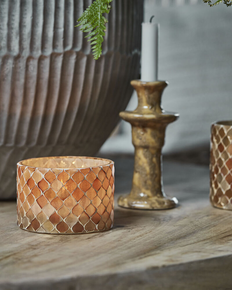 I denne sæson er House Doctor blandt andet kommet med disse smukke lysestager i glas i varme/brændte farver, der står smukt uden lys, men naturligvis endnu smukkere med et tændt fyrfadslys eller led-lys. Perfekt til en gave eller hvis du selv ønsker lidt nyt til din indretning, uden at det går specielt hårdt ud over økonomien. Fåes i 2 størrelser.