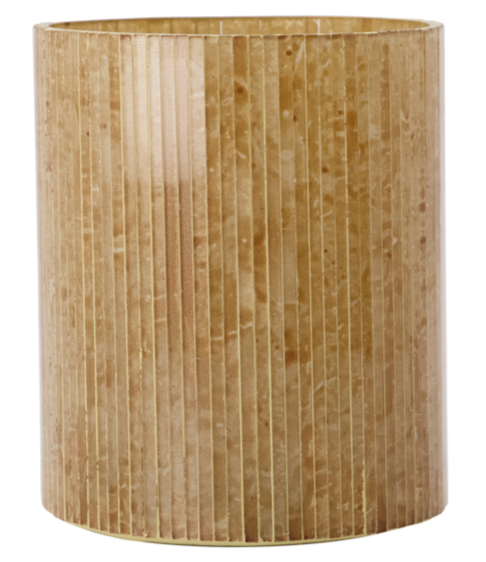 Mirr fra House Doctor er en stor fyrfadslyseholder i gylden mosaik, der tilføjer tekstur og glans til dit hjem. Designet er smukt med et let rillet mønster, som fremstår endnu smukkere, når der tændes lys i stagen.
