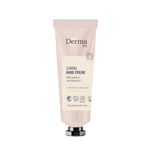 Derma Eco Hand Cream er en mild, blødgørende håndcreme, som plejer og beskytter hænder, negle og neglebånd. Cremen er baseret på økologiske og aktive ingredienser. Den indeholder bl.a. antioxidanten E-vitamin samt økologisk aloe vera, mandel-, jojoba- og kokosolie, der beskytter mod fugttab og opretholder hudens naturlige elasticitet.