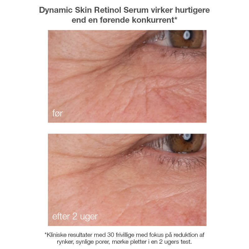 *Vi har fokus på produktsikkerhed. Vi anbefaler, at gravide og/eller ammende kunder spørger deres læge, inden de begynder at bruge produkter indeholdende retinol, herunder Dynamic Skin Retinol Serum.