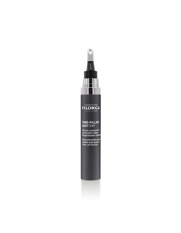 Time-Filler Shot 5XP er et koncentreret serum som korrigerer og modvirker rynker og mimiske linjer. Panderynker, bekymringsrynker, smilerynker (kragetæer), rynker ved overlæben samt rynker fra mundvigen og ned (marionetlinjer) vil opleves mindre fremtrædende, og ansigtstrækkene vil se mere afslappede ud .