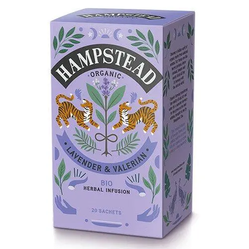 Nyd en kop af Hampsteads økologiske Lavendel & Baldrian te, når du trænger til en rolig pause eller som en god kop te før sengetid.