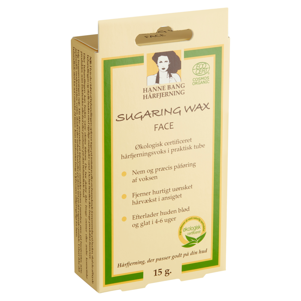"Sugaring Wax" fra Hanne bang er økologisk certificeret, vegansk og fremstillet af ingredienser med 100% naturlig oprindelse. Denne version til ansigtet kommer i en praktisk tube, som gør det nemt at påføre voksen meget præcist, hvilket er en stor fordel, når du skal fjerne hår på overlæben eller omkring brynene.