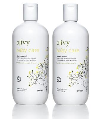 *Det er vigtigt at bruge den rette mængde. Olívy virker i tre stadier: Den renser, plejer og beskytter huden mod fugten og affaldsstofferne fra den næste fyldte ble.