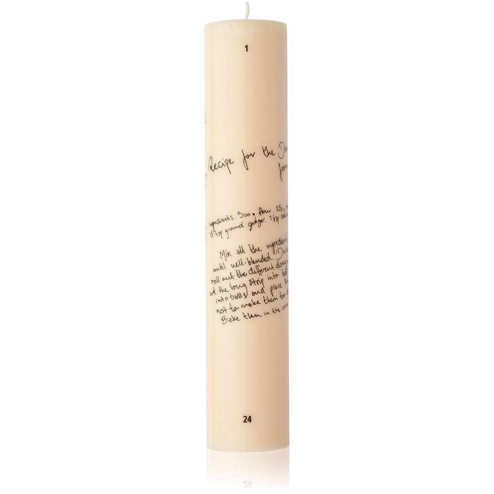 Gør nedtællingen til jul hyggelig med dette julelys. Lyset er fremstillet af stearin. Julelyset er svanemærket. Vælg mellem tre designs. Det fine "Recipe of Traditions" lys er lavet i samarbejde med Børns Vilkår, og for hvert solgt lys donerer vi 10 DKK til Børns Vilkår.