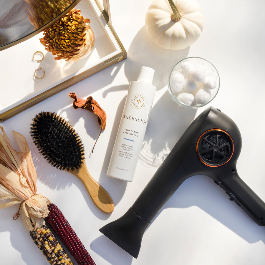 Tag en dyb indånding og fordel nænsomt Quiet Calm Curl Control jævnt ud i krøllerne, mens de er fugtige efter vask. Brug fingrene til forsigtigt at adskille og forme krøllerne til ønsket stil, og tilføj mere produkt efter behov. For mere definerede krøller kan de diffunderes eller du kan lade håret lufttørre. Med en føntørrer og Quiet Calm Curl Control kan du ligeledes glatte håret.