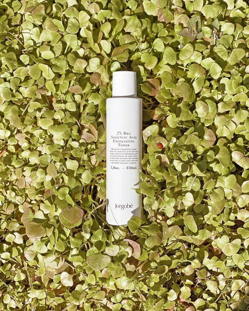 En dybderensende toner med 2% salicylsyre. Jorgobé 2% BHA Salicylic Acid Exfoliating Toner opløser tilstoppede porer og reducerer urenheder, rynker og fine linjer, så huden genvinder sin naturlige glød og bliver blødere, glattere og ser mere strålende ud. Cellefornyelsen øges, og hudens struktur bliver glattere, samtidig med at inflammation og rødme i huden dulmes. Toneren er vegansk, parfumefri og er formuleret med 98% ingredienser af naturlig oprindelse.