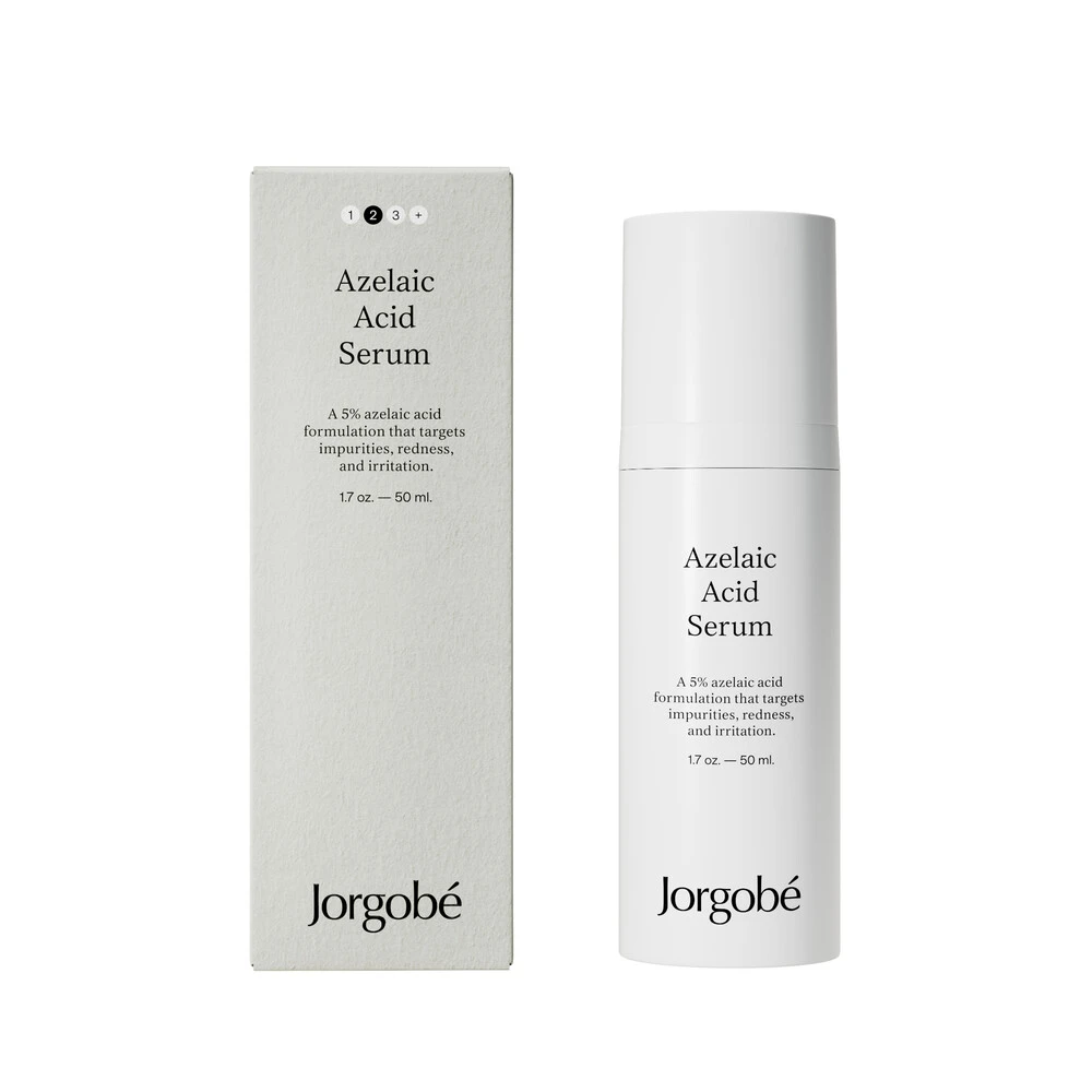 Jorgobé Azelaic Acid Serum er et serum med 5 % azelainsyre, som modvirker bumser, mørke pletter, misfarvninger og rødme. Formlen indeholder også lakridsrodsekstrakt, som har beskyttende egenskaber, squalane, som blødgør huden, og et tripeptid, som har en synligt beroligende og fugtgivende effekt.