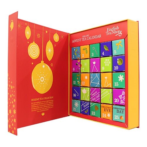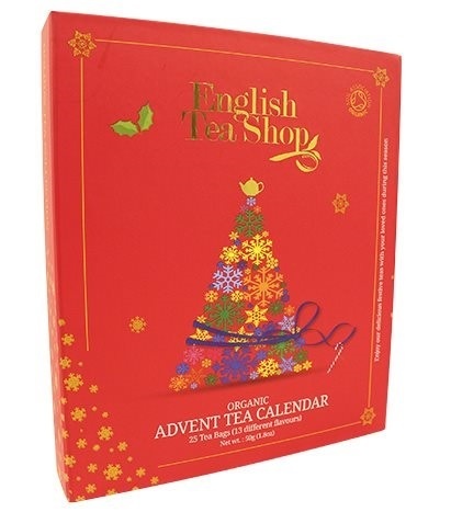 Adventskalender med 25 æsker økologisk te. Hver tepakke vejer 50 gram og der er 13 forskellige smagsvarianter.