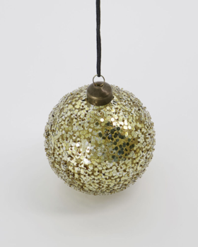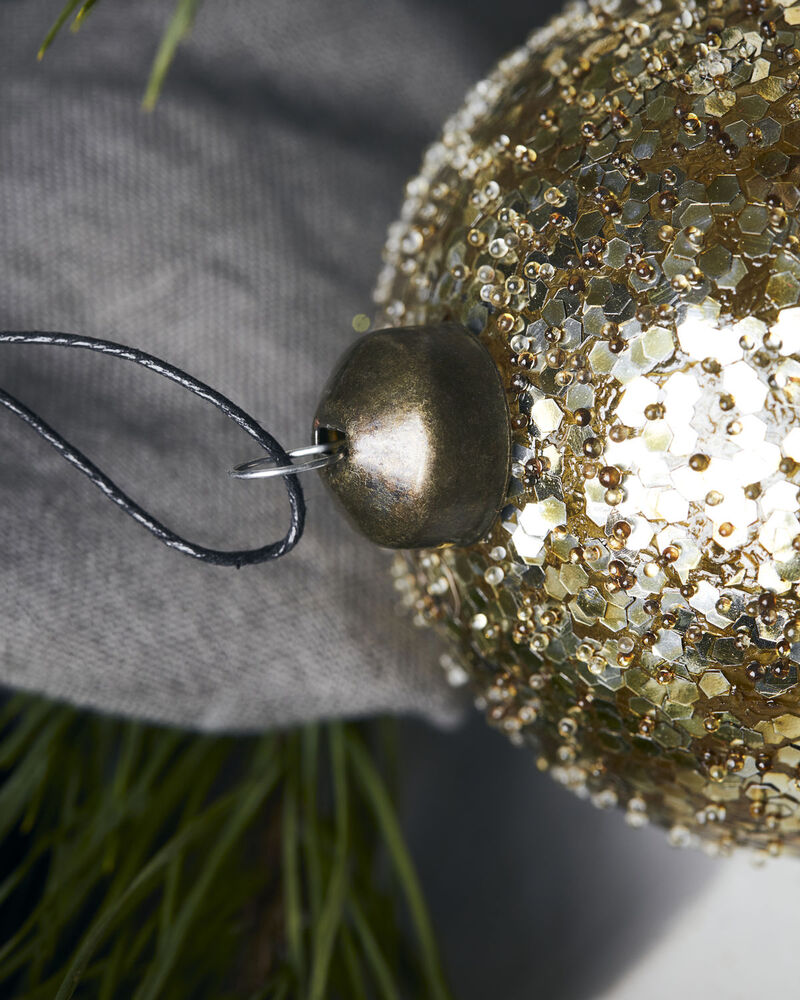 Den klassiske guldfarve og en struktureret overflade samles i denne kugle fra House Doctor. Chosen er lavet af glas og har et glimmerlook, så du får en traditionel julekugle med et twist.