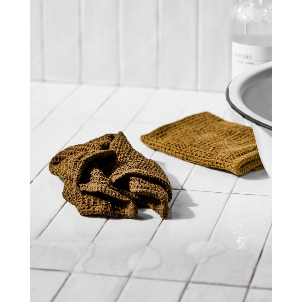 Med Merakis opvaskeklude kan du tilføre både stil og funktionalitet til dit køkken. Den smukke mørk oliven farve komplementerer de fleste farver og passer dermed ind i enhver indretning og tilfører et strejf af elegance. Kludene er lavet af Oeko-Tex certificeret bomuld i høj kvalitet, hvilket sikrer en blød og yderst absorberende overflade – perfekte til hverdagens rengøringsopgaver.