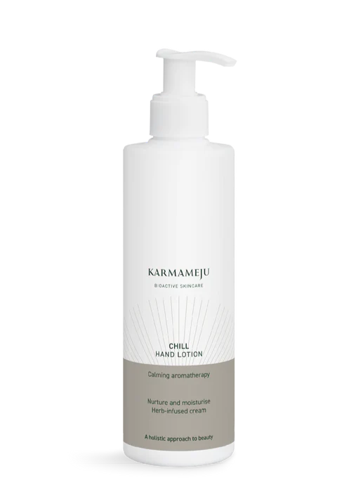 CHILL er seriens mildeste håndcreme, ideel til hele familien. Sammensætningen af æteriske olier af bla. orangeblomst og palmarose giver hænderne en smuk fin mild duft, især velegnet til sensitiv hud. CHILL beroliger, plejer, hydrerer og beskytter huden. Ekstrakter af Maca, Chlorella og Alma genopretter fugtbalance og fremmer hudens fornyelse.