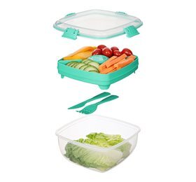 Salad To Go 1,1 l - smart madkasse til salaten med tilhørende bøtte til dressing (35 ml) og bestik. Det hele samlet i en boks.