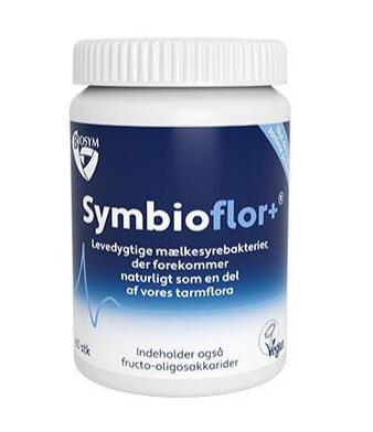 Symbioflor+ har nøje udvalgte mælkesyrebakterier som kan modstå galde og mavesyre og nå uskadte frem til tyktarmen. Indeholder også fructo-oligosakkarider.