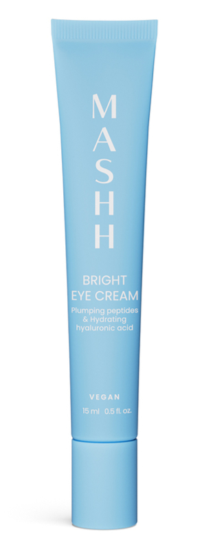 Bright Eye Cream fra MASHH er en let øjencreme uden parfume, med kollagen-boostende tripeptid og fugtgivende ingredienser, der modvirker rynker og forbedrer hudens elasticitet. Øjencremen indeholder lysreflekterende pigmenter, lette olier, E-vitamin og hyaluronsyrer i forskellige molekylære størrelser.