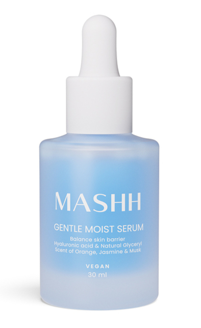 Gentle Moist Serum giver et fugtighedsboost med balancerende egenskaber for hudens barriere. Serumet har en let tekstur og absorberes hurtigt. Det indeholder naturlig glyceryl, en velkendt ingrediens, der tiltrækker fugt i huden sammen med hyaluronsyre. Kombinationen af disse to binder en større mængde fugt i huden takket være deres forskellige molekylære vægt, hvilket giver huden en unik silkeblød følelse.