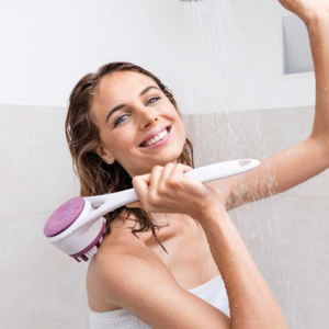 FC 25 Roterende kropsbørste med håndtag, der renser huden i dybden og fjerner døde hudceller. FC25 har 2 rotationshastigheder, er batteridrevet og IPX 7 vandtæt, så du nemt og sikkert kan anvende den i bad. FC 25 kan både anvendes med og uden håndtag. Det vil sige, at den kan anvendes på hele ryggen samt arme, mave og ben. Der medfølger 2 forskellige børster: en standard børste, som passer til alle hudtyper og en børste til mere dybdegående eksfoliering. Børsten til eksfoliering renser mere i dybden; det anbefales derfor at bruge den højst 2 gange ugentligt. Medfølger 4 x 1,5 V AA batterier.