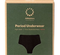 AllMatters menstruationstrusser er tilgængelige i en klassisk sort High Waisti trusse i størrelserne XXS-XXXL.