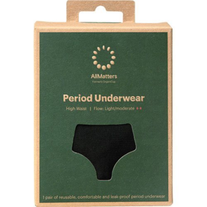 AllMatters menstruationstrusser er tilgængelige i en klassisk sort High Waisti trusse i størrelserne XXS-XXXL.