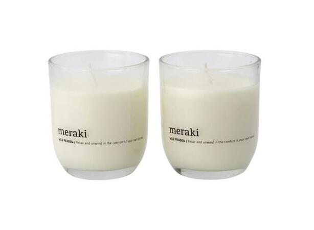 Intet skaber den rette stemning som duftlys. Meraki giver dig dette sæt med 2 små duftlys, som hedder Wild Meadow. De kommer i gennemsigtige glasholdere og forvandler dit hjem til et fredfyldt sted med deres lette blomsterduft.