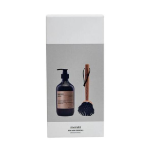 Det er nemt at give en gave og sprede glæde med en gaveæske. Denne æske fra Meraki består af en opvaskebørste og et opvaskemiddel. Børsten er designet med et bambusskaft, mens hovedet kan tages af og vaskes. Opvaskemidlet hedder Blossom Breeze, er Svanemærket og har en skøn duft af appelsin og lemon. Det er også velegnet til rengøring af gulve, vægge og glasoverflader.