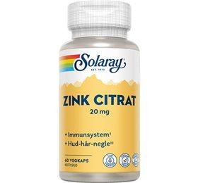 Kosttilskud fra Solaray. Zink Citrat indeholder zink i citratform lagt i en base af græskarkerner.