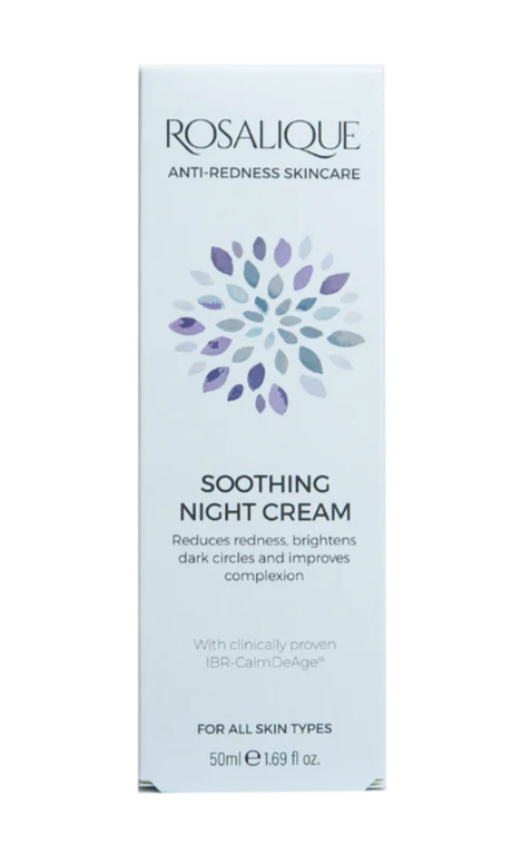 Rosalique Soothing Night Cream er specielt udviklet til følsom hud, inflammation og rødme. Denne plejende cocktail af klinisk dokumenterede rødme-reducerende ingredienser dulmer rødme, lindrer irritation, lysner mørke rande og ensarter din hudtone samtidig med, at den gennemfugter og blødgør din hud.
