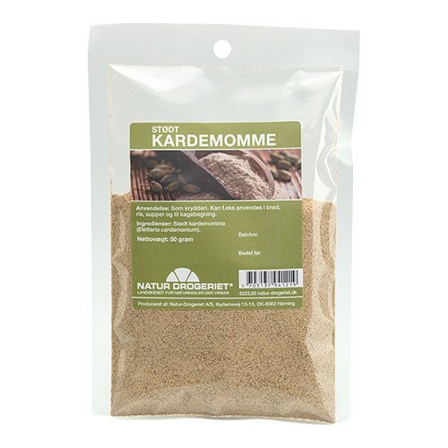 Stødt kardemomme er et lækkert krydderi, som vi her i Danmark mest bruger ved juletid og til brød og kager. Krydderiet stammer fra Indien, hvor det bruges hele året til brød, ris og supper.