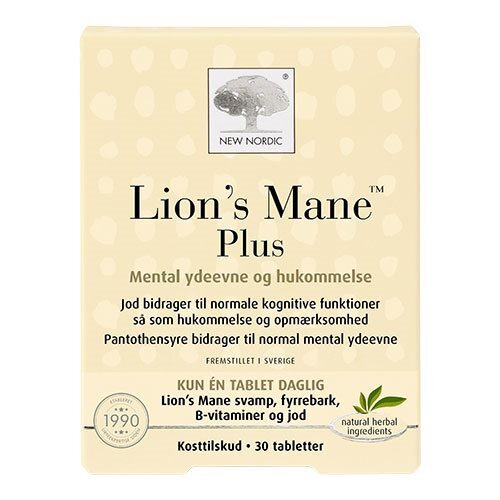 Lion’s Mane Plus tabletten indeholder et kombinationsekstrakt af svampen Lion’s mane, fyrrebark og lang peber. Derudover indeholder den et vitamin B kompleks samt vitamin D og jod.