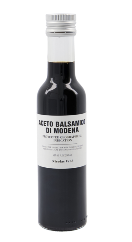 Aceto Balsamico di Modena PGI, PGI - som denne balsamicoeddike også hedder - er en italiensk, aromatisk eddike fremstillet af inddampet druemost. Eddiken har derfor en lidt tykkere konsistens og sødere smag end andre eddiker. Den er helt perfekt til salatdressinger, som smagsforstærker i saucer, eller til at indkoge og bruge som en lækker sirup til desserter eller oste. Eddiken kommer i en smuk glasflaske, som du med fordel kan have stående fremme sammen med dine olier og favoritkrydderier fra Nicolas Vahé.