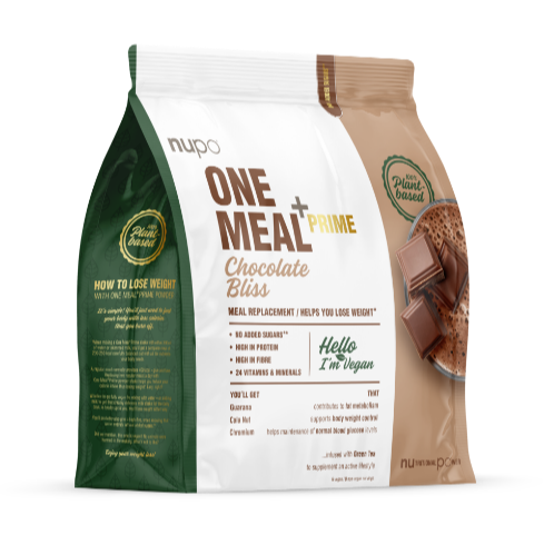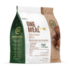 Nupo One Meal +Prime Powder Chocolate Bliss er måltidserstatning med aktive ingredienser fra naturens egne kilder til vægttab – helt uden tilsat sukker! *Udskiftning af to daglige hovedmåltider i en energireduceret kost med måltidserstatninger bidrager til vægttab. Det er vigtigt at opretholde en varieret og afbalanceret kost og en sund livsstil.