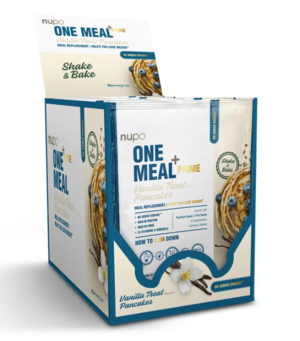 Nupo One Meal +Prime Pancake Vanilla Treat er et blandingsklart pandekage måltidserstatningspulver til vægttab og vægtkontrol* – helt uden tilsat sukker!