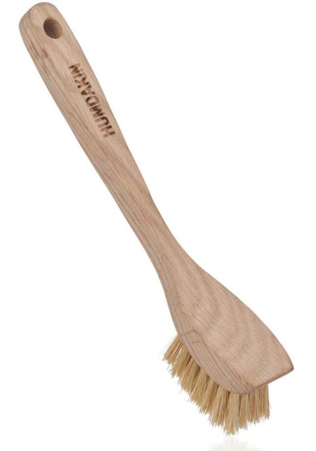 En effektiv opvaskebørste i mørk egetræ med 100% plante-baseret tampico-hår. Tampico kommer fra planten med navnet agave lechuguilla. De holdbare fibre giver en mellem hård børste og holder formen godt. Brug børsten til din hverdags-opvask med HUMDAKIN opvaskemiddel. Tampico giver børsten en polerende effekt og er god til den grove rengøring med let fastbrændt mad.