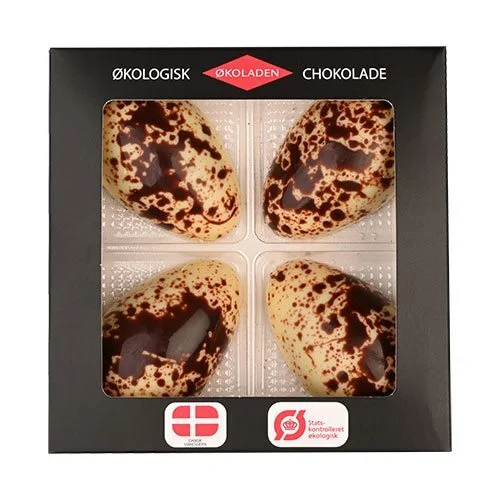 4 stk. økologiske æg af hvid chokolade fyldt med lakrids creme.