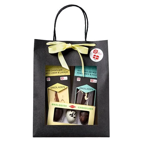Gourmet gavepose - indeholder 2 chokoladeplader og 3 marcipanæg. Allesammen i økologisk kvalitet.