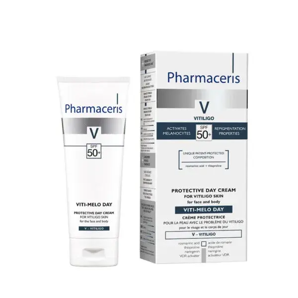 Beskyttende dagcreme til vitiligo-påvirket hud til ansigt og krop. Indeholder fotostabile filtre, der giver meget høj beskyttelse mod UV-stråling.