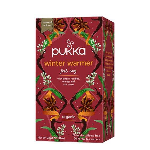Pukka Winter Warmer med ingefær, rooibos, appelsin og stjerneanis. Varm, sødmefuld og med et strejf af citrus.